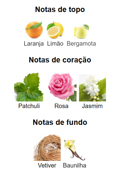 ⚡ Notas de Topo (O Início Luminoso): Laranja, Limão e Bergamota: A abertura é vibrante e cítrica. O frescor efervescente da Laranja e do Limão proporciona uma introdução brilhante e revigorante.